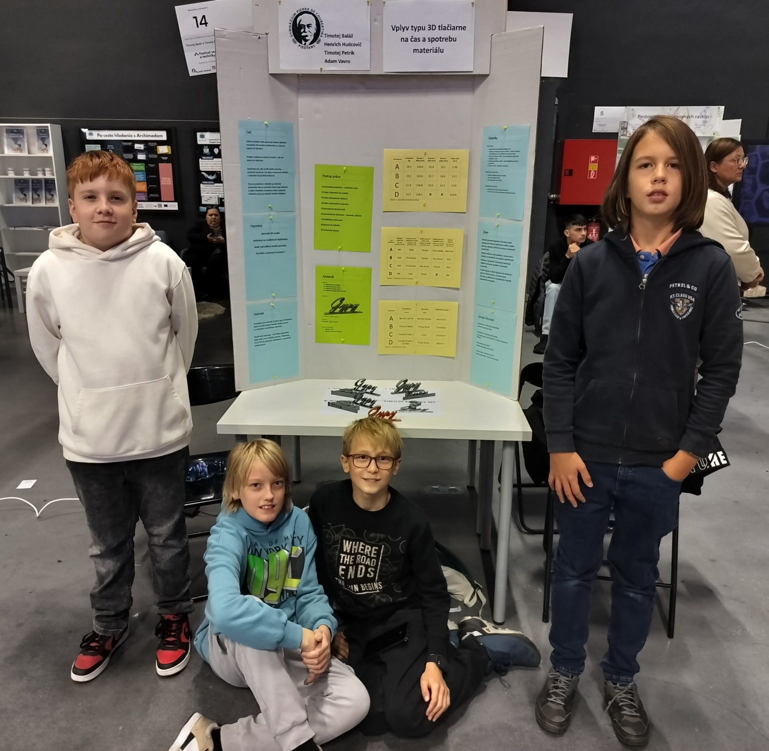 – projekt skúmal, ako rozdielne typy tlačiarní ovplyvňujú dobu tlače, hmotnosť, rozmery a kvalitu výtlačku. (Timotej Baláž, Timotej Petrík, Henrich Hudcovič, Adam Vavro)