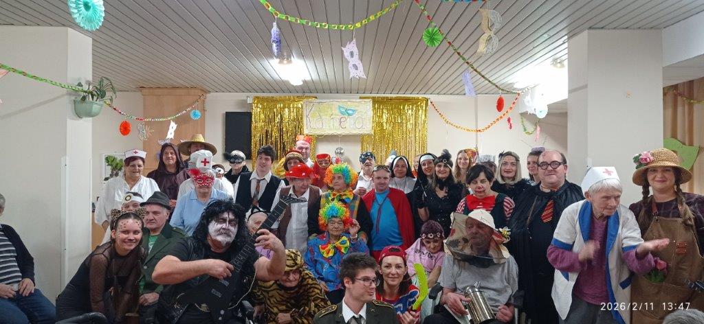 Fašiangové obdobie sme v našom zariadení ukončili tradične zábavou. Fašiangová zábava s karnevalovými maskami sa konala dňa 11.02.2026. Klienti sa veľmi tešili, o čom svedčí aj veľké množstvo vtipných a kreatívnych masiek. Bolo všetko, krásna výzdoba, super zábava, hudba a tanec. A nechýbali ani výborné fašiangové šišky.