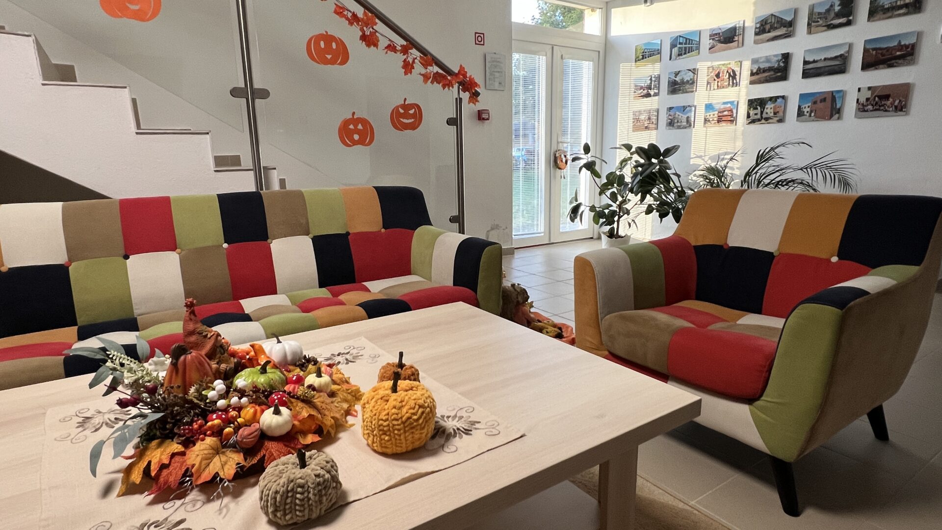 Študentský domov je teraz skutočným jesenným útočiskom. Vonku svietia tekvice, vo vnútri tancuje svetlo lampášikov po stenách a kamkoľvek sa pohneme, sprevádzajú nás farby, vône a úsmev jesene.