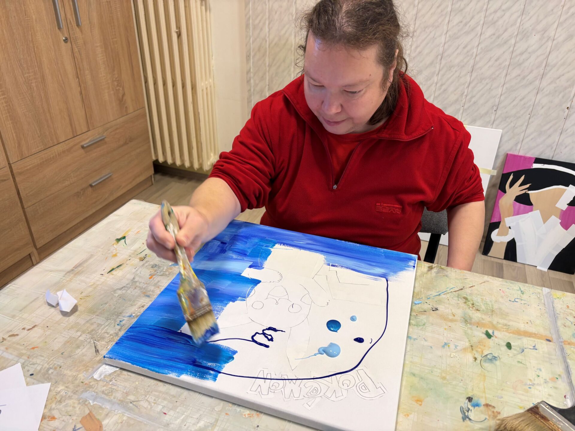 Maľovanie akrylom na plátno v našom Centre sociálnych služieb má svoju tradíciu a stále pokračuje. Namaľovať obraz nie je vôbec jednoduché a, samozrejme, žiadny nevznikne z večera do rána. Napriek tomu je to stále obľúbená arte-aktivita našich klientok. Vyžaduje okrem iného nápad, fantáziu, trpezlivosť a precíznosť. Výsledok, ale vždy stojí za to. Aktuálne máme tiež niekoľko rozpracovaných obrazov. V priebehu decembra i januára na nich naše klientky pracovali a pracujú v rámci individuálnych arte-aktivít.