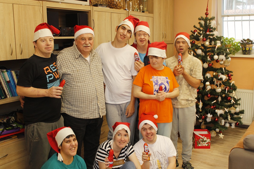 A opäť po roku 9. 12. 2025 k nám prišiel na návštevu náš kamarát Dušan. S veselou náladou a plnou krabicou čokoládových figúrok, ktorými nás Dušan obdaril, sme si spolu vypili čaj a niektorí aj kávičku. Nášho Mikuláša Dušana sme ponúkli vianočným pečivom, ktoré sme sami vyrobili.