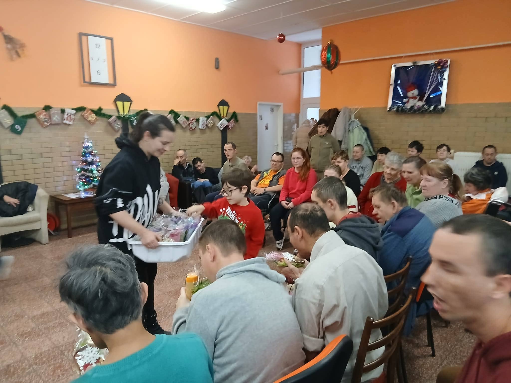 Po srdečnom privítaní sa začalo tradičné rozdávanie balíčkov, ktoré vyčarilo úsmevy na tvárach všetkých prítomných. Klienti si na oplátku pripravili krátky kultúrny program ako prejav vďaky. Spoločne sme si zaspievali známe piesne a vytvorili atmosféru plnú pohody, blízkosti a predvianočného tepla.