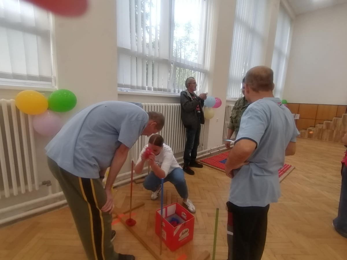 Po srdečnom privítaní si naši klienti zmerali sily v šiestich športových disciplínach, ako napríklad: hod oblúkom na kôš, navliekanie drôteniek na tyče, kop na bránku a ďalšie. V súťažiach sa im darilo veľmi dobre – domov si odniesli niekoľko medailí a diplomov za popredné umiestnenia. Naše zariadenie sa v celkovom hodnotení umiestnilo na krásnom treťom mieste.