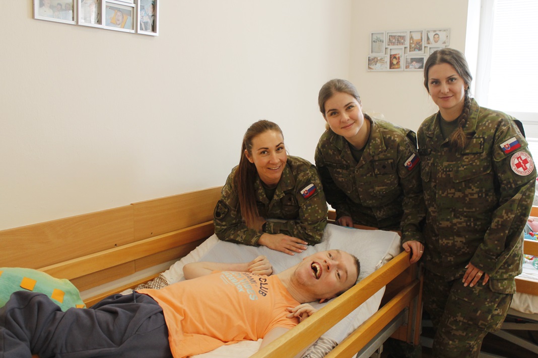 Dňa 17. 2. 2026 nás svojou návštevou prekvapili naši priatelia vojaci z Hlohovca. Priniesli nám veľa sladkostí, časopisov, tričiek a finančný dar, za čo im veľmi pekne ďakujeme. My sme im zatancovali, zaspievali, odovzdali sme im pre potešenie srdiečka, ktoré sme vyrábali. Prekvapením pre nás bola aj vojenská sanitka na dvore nášho domova, v ktorej sme si radi posedeli. Vojaci z kasárni z Hlohovca sú naši skutoční priatelia, ktorí na nás nikdy nezabúdajú. Ešte raz ďakujeme.