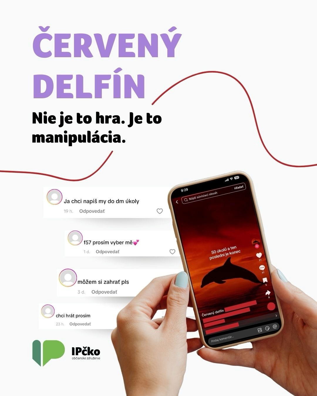„Červený delfín“ je označenie pre online výzvu, ktorá sa môže šíriť prostredníctvom sociálnych sietí a chatových skupín. Deti sú oslovované tzv. „kurátormi“ – osobami, ktoré ich lákajú na plnenie úloh pomocou pútavých vizuálov, sľubov odmien či pocitu výnimočnosti.