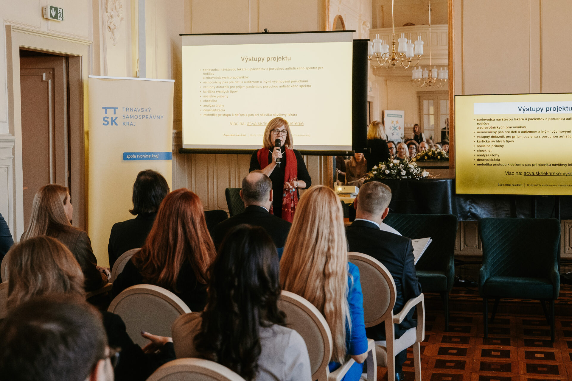 Mgr. Mária Kopčíková, PhD. z Akademického centra pre výskum autizmu (ACVA) vysvetlila, prečo je komunikácia kľúčová pre úspešné lekárske vyšetrenia u detí i dospelých s PAS. Zdôraznila, že aj malé úpravy – napríklad pokojnejšie prostredie, viac času či jasné inštrukcie – dokážu zásadne znížiť stres pacienta. Podľa jej slov, „na Slovensku pribúda každoročne 570 až 850 detí s diagnózou autizmu. Väčšina z nich bude potrebovať zdravotnú starostlivosť po celý život. Aj preto je téma, ktorú Trnavský kraj otvoril, mimoriadne dôležitá.“