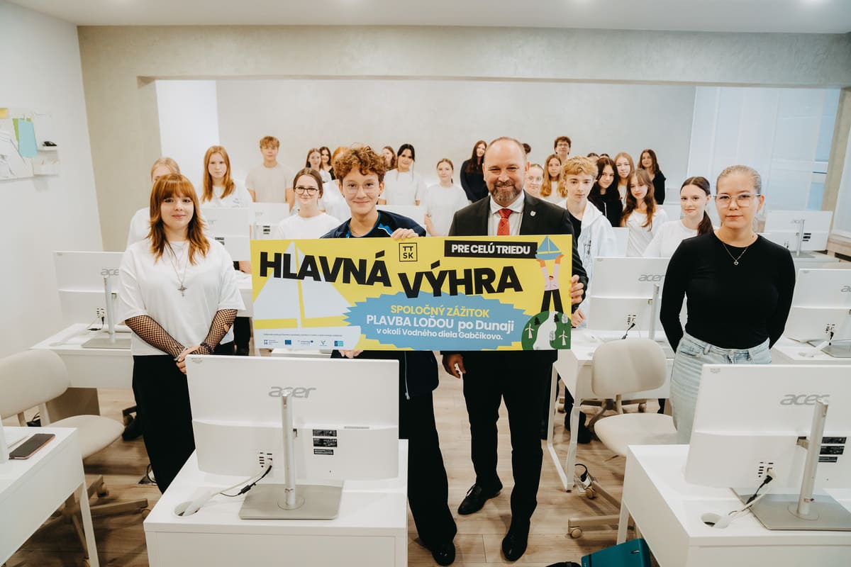 Pre všetkých stredoškolákov v našom kraji sme pripravili vedomostno-zábavný kvíz „Testuj svoje vedomosti“. Zapojilo sa doň takmer 900 študentov, ktorí si hravou formou overili, čo vedia o verejnom priestore, doprave a jej udržateľných formách. Cieľom nebolo len správne odpovedať, ale aj premýšľať nad tým, ako sa každý z nás podieľa na fungovaní mobility v mestách. Zo správnych odpovedí sme vyžrebovali výhernú triedu – tím Áčkarov z Hotelovej akadémie Ľ. Wintera v Piešťanoch. Výherný šek študentom osobne odovzdal župan Trnavského samosprávneho kraja. „Áčkari“ sa tak posledný septembrový deň spolu s nami a OZ Vodohospodári zúčastnili odbornej exkurzie na Vodnom diele Gabčíkovo. Okrem návštevy infocentra a priestorov elektrárne absolvovali študenti aj plavbu loďou po Dunaji a preplavbu plavebných komôr – zážitok, ktorý spojil zábavu, vzdelávanie a ekologické témy v praxi.